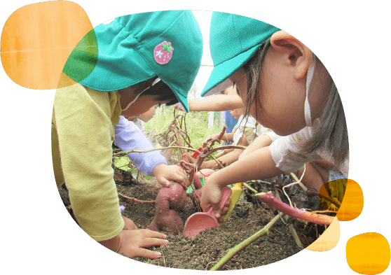 週1回、ネイティブの先生に来ていただき、日常に子どもたちが触れるテーマを元に、歌・本・アクティビティを通して、体を動かしながら楽しく英語に触れています。