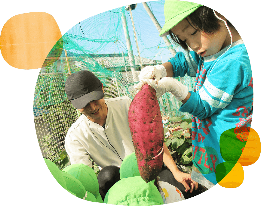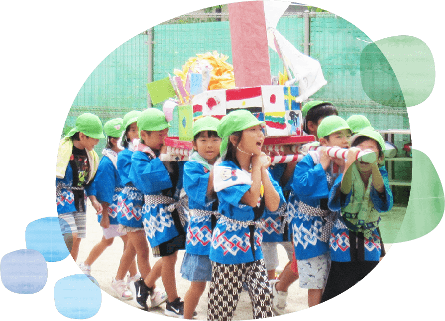 月に1回、体操の先生に来ていただき、柔軟体操をはじめ、マット運動や跳び箱、鉄棒等に取り組んでいます。日々の活動の中でも継続して取り組むことで、目標に向かって1つずつ成長する子ども達。心も身体も大きく健やかに…