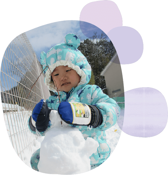 2歳児から週に1回、専任の先生に来てもらいレッスンをおこなっています。遊びながら楽しく英語を学んでいます。